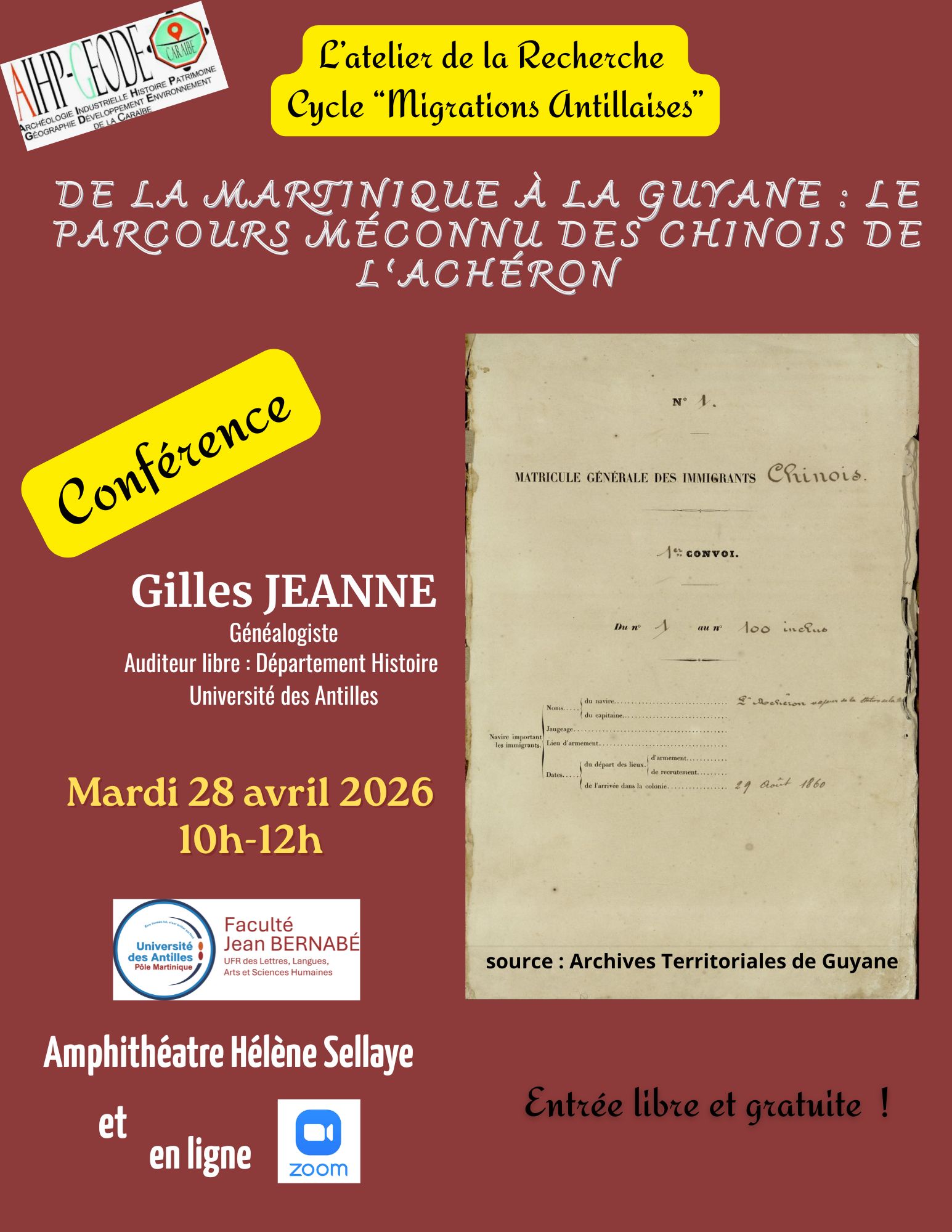Conférence : "De la Martinique à la Guyane : le parcours méconnu des Chinois de l'Achéron", Gilles JEANNE (généalogiste)