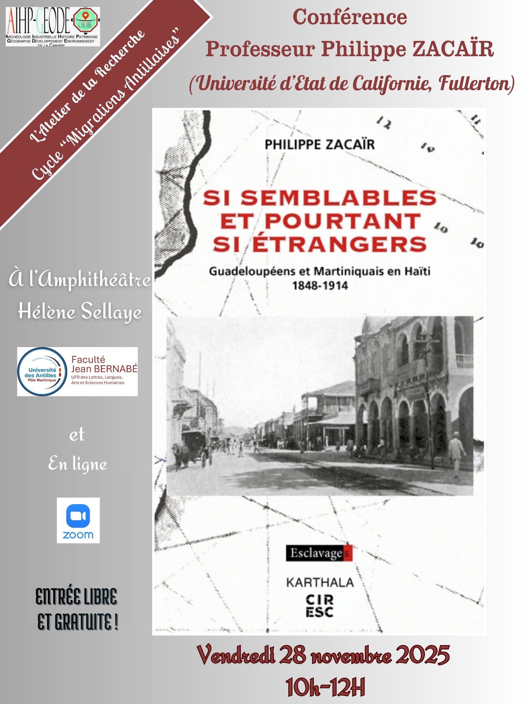 Atelier de la rechercheVendredi, 28 novembre, 2025Dans le cadre du cyle 2025-2026 : "Les migrations antillaises" Organisé par l'UR 6-1 : Oui